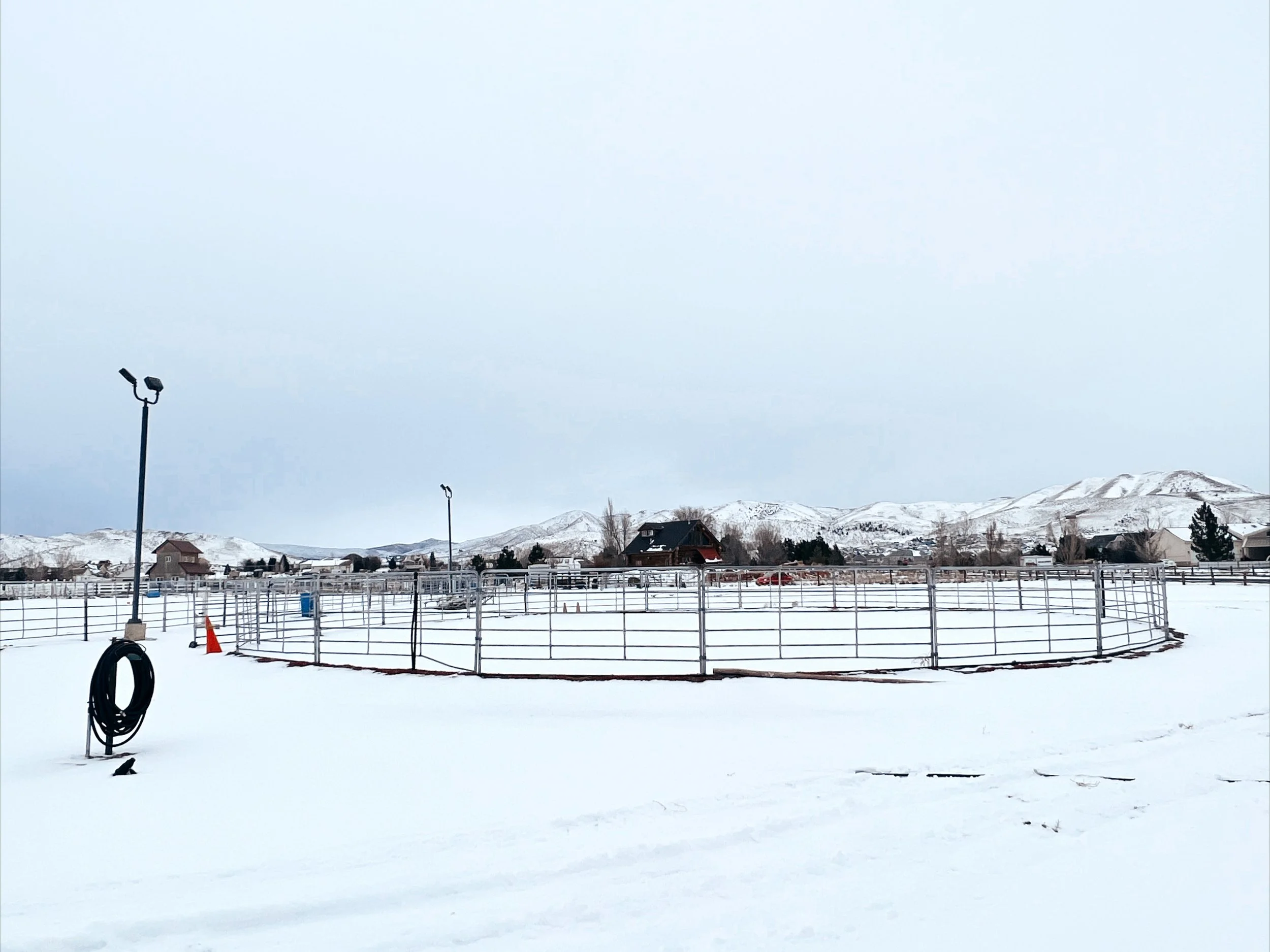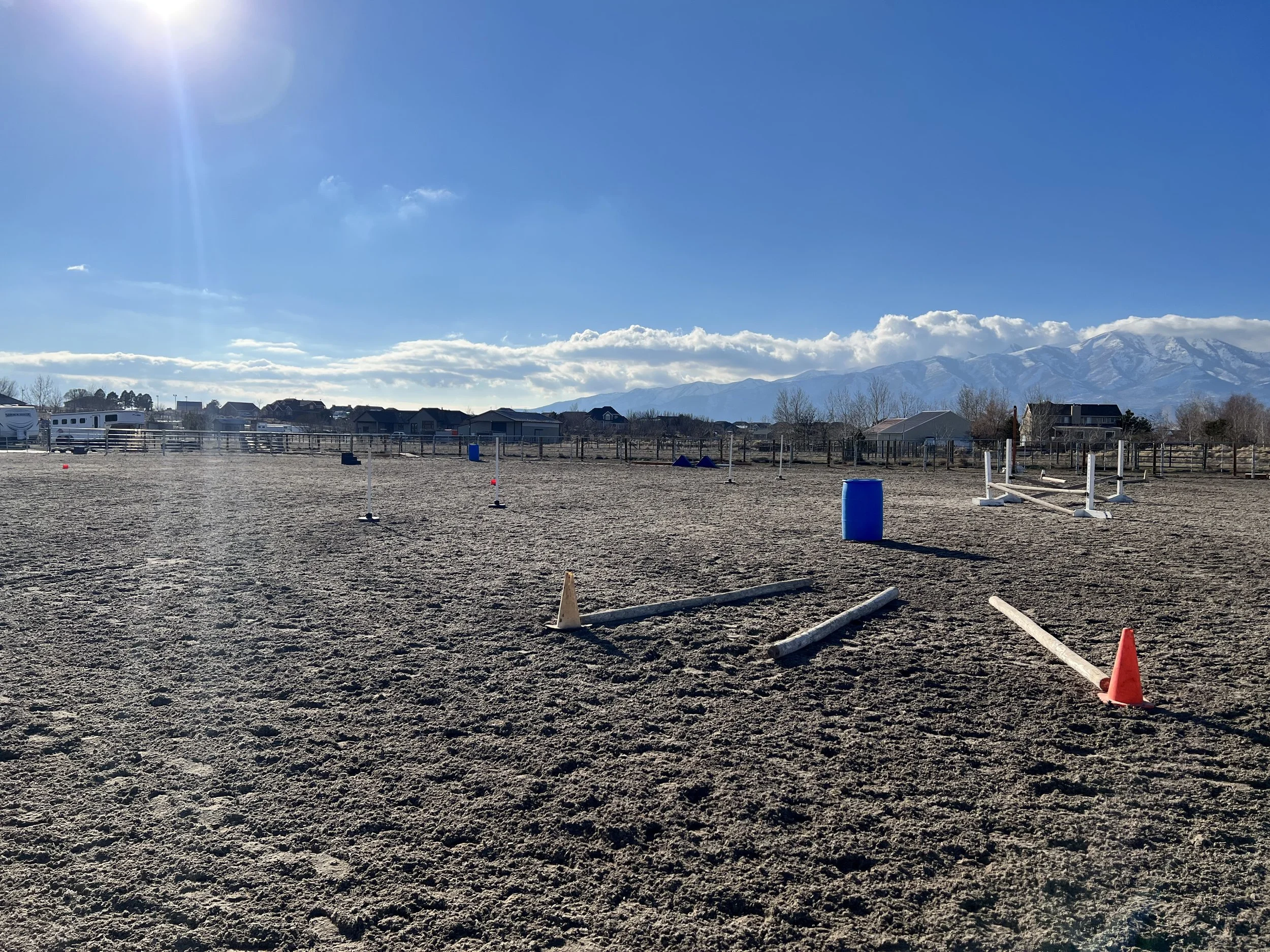 Our round pen is a generous 60’ in diameter and offers excellent footing. The round pen is the perfect size and a great space to practice everything from riding to liberty work!